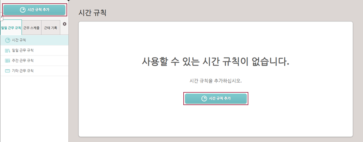 화면 왼쪽 사이드바에서 일일 근무 규칙 → 시간 규칙을 클릭하세요.