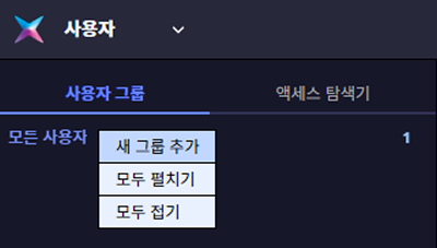 화면 왼쪽 사이드바의 사용자 그룹 탭에서 상위 그룹을 선택하고 마우스 오른쪽 버튼을 클릭하세요.