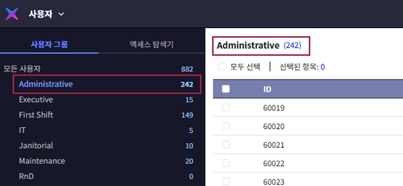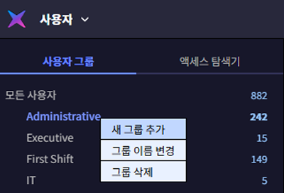 개별 사용자마다 출입 권한을 설정하는 대신, 부서별 또는 역할별 사용자 그룹을 만들어 동일한 권한을 한 번에 적용할 수 있습니다.