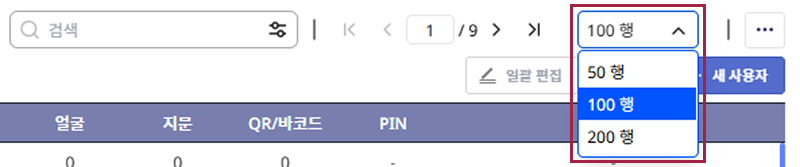사용자 목록에 표시되는 사용자 수를 변경할 수 있습니다. 화면 오른쪽 상단의 목록 선택 상자에서 원하는 사용자 수를 선택하세요. 선택할 수 있는 옵션은 50명, 100명, 200명입니다.