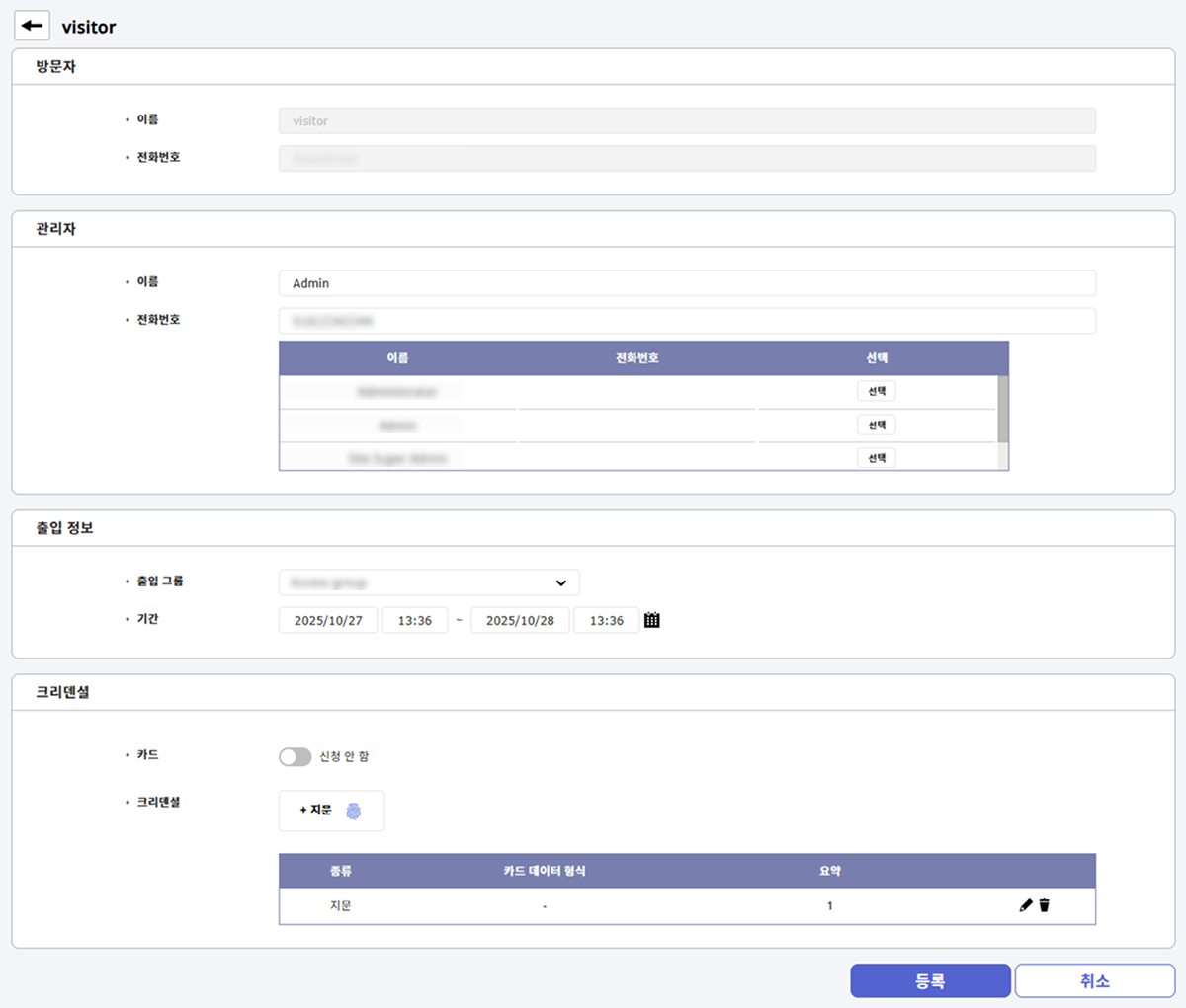 방문자 목록에서 다시 등록할 방문자를 클릭하세요.
