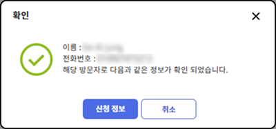 지문과 일치하는 방문자가 검색되면 확인 메시지가 나타납니다. 신청 정보 버튼을 클릭하세요.