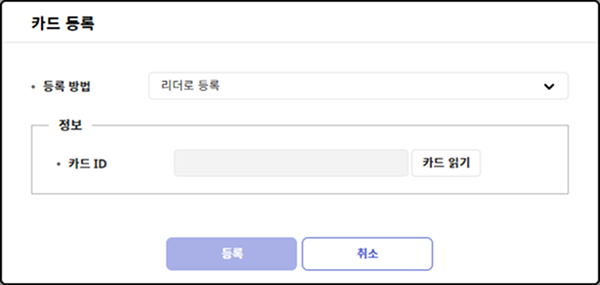 등록할 카드를 장치에 스캔하려면 카드 읽기 버튼을 클릭하세요.